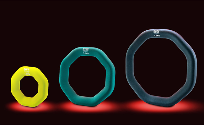 WEIGHTED RING SETWEIGHTED RING SET Multiple use for whole body training. Cast iron filling, PVC cover. Weight: 2.5 / 3.5 / 4.5 kg. Grip diameter: 3,6 cm. Ring Diameter: 17 / 25 / 33.